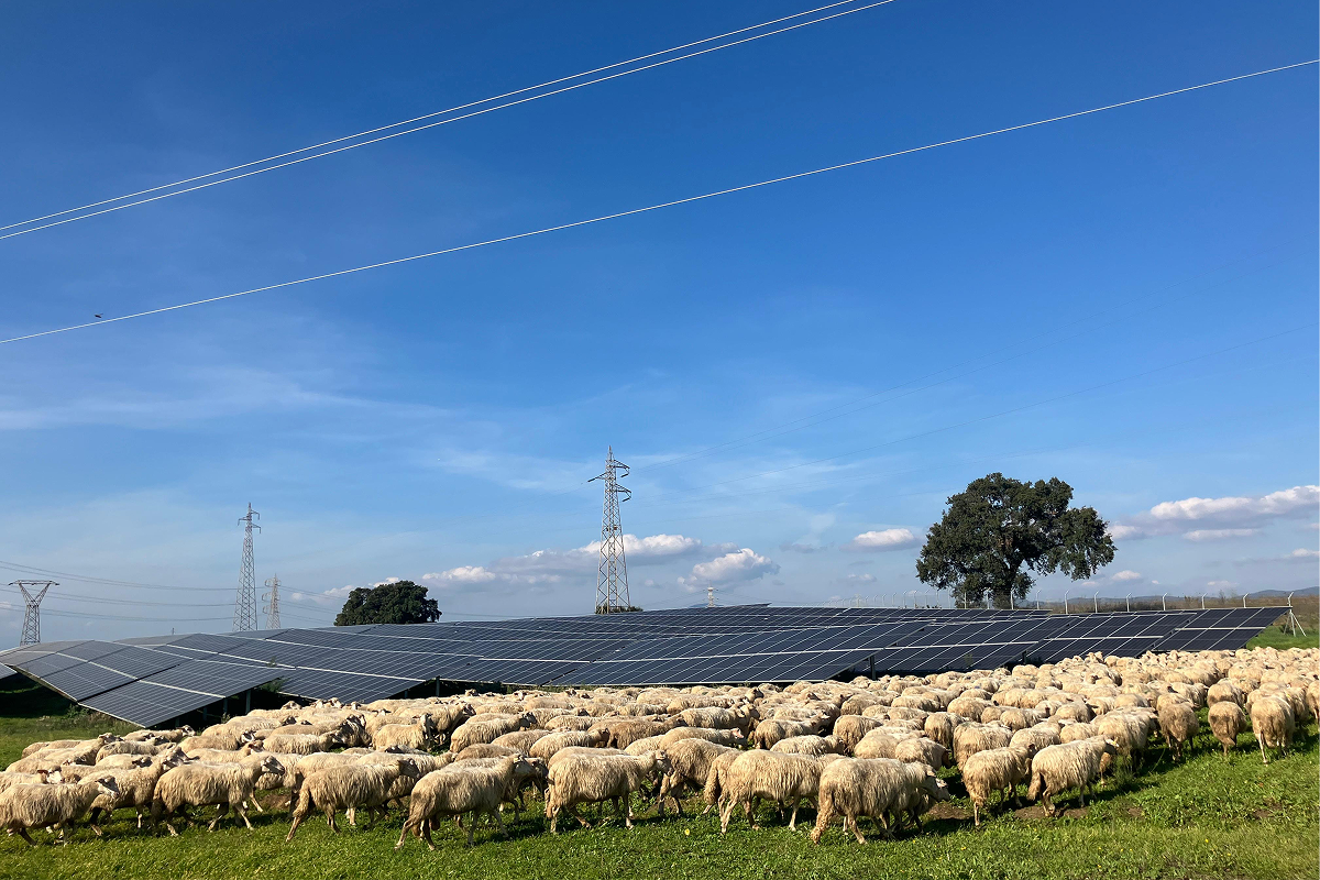 Un gregge di circa 500 pecore viene impiegato per la gestione naturale dell’erba, riducendo costi energetici e rischio incendi.